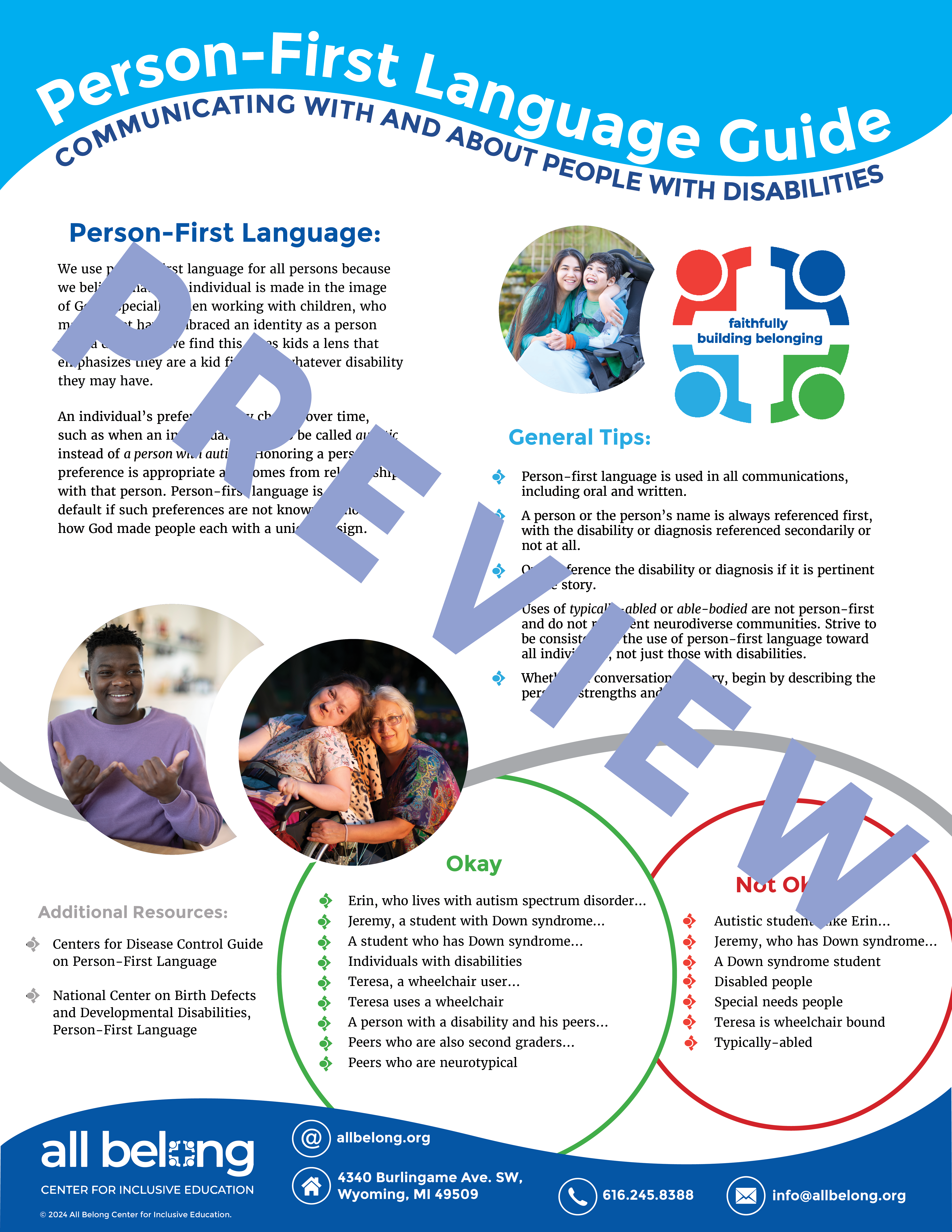 ✔ Person-First vs. Identity-First Language – When and how to use each respectfully ✔ Do’s & Don’ts – Clear examples of language that fosters belonging ✔ Best Practices for Schools – Guidance for conversations, writing, and policies ✔ Additional Resources – Links to trusted sources on inclusive communication