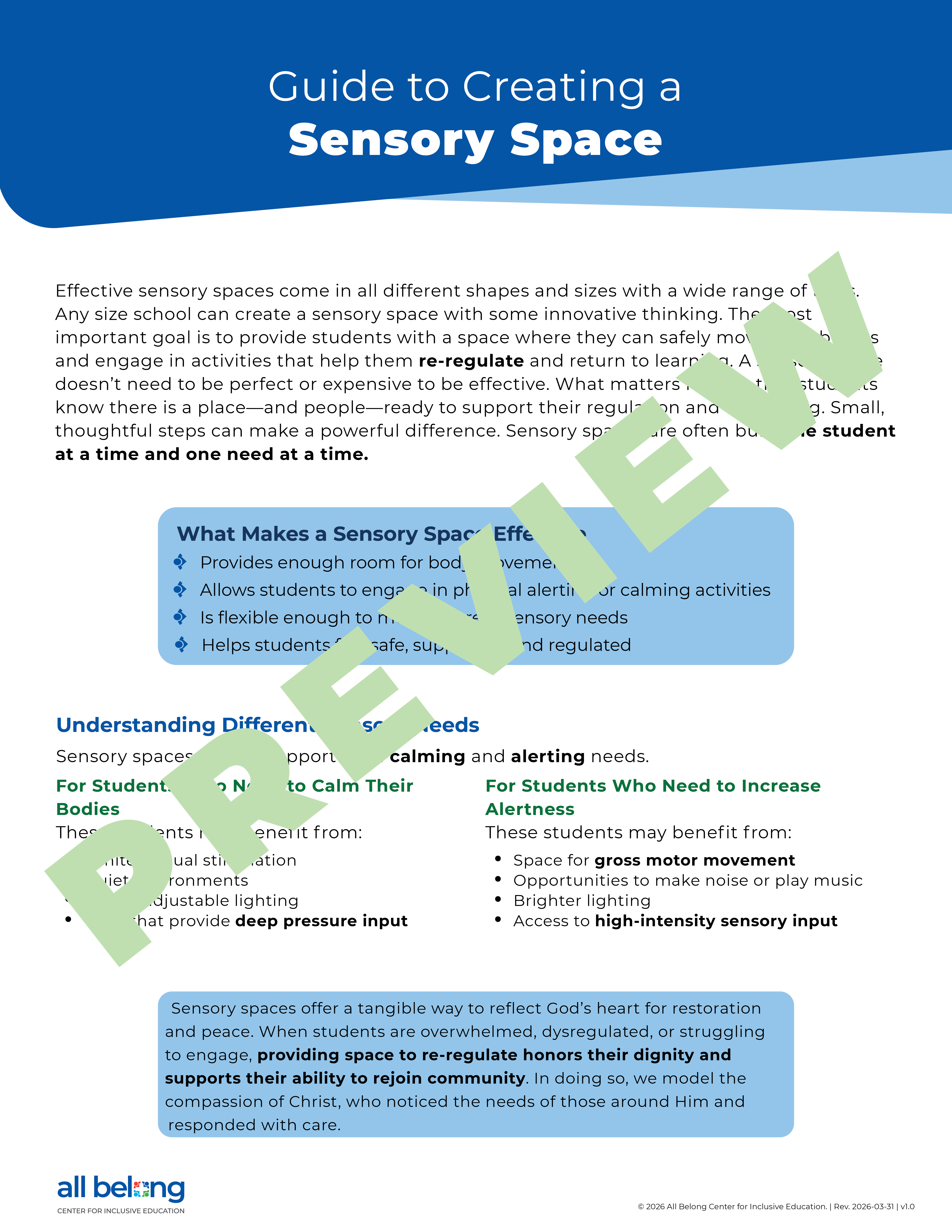 This bundle with its 2-page guide, student reflection form, take home parent letter, and 7 large, attractive, printable posters makes it easy for teachers to create simple, effective sensory spaces that support regulation.